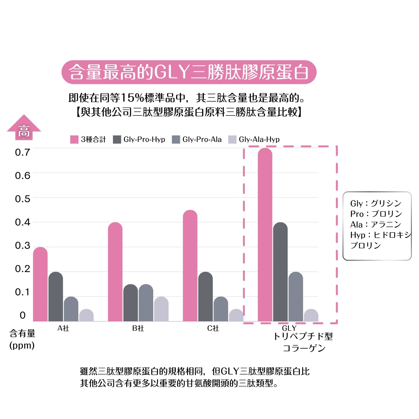 即使在與其他公司同等15%標準品中,其三肽含量也是最高的。