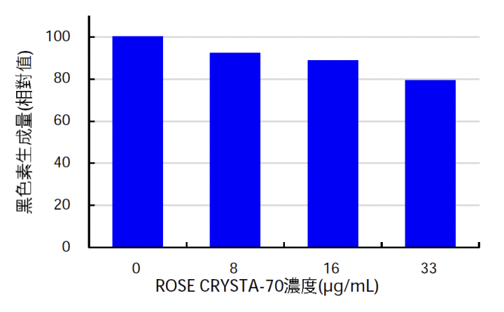 真皮細胞外基質 1 型膠原蛋白、彈性蛋白和透明質酸會被成纖維細胞產生的 I 型膠原蛋白基質金屬蛋白酶 1 (MMP-1) 降解。 小劑量的紫外線會促進 MMP-1 蛋白質和蛋白質過度活躍的增加。 因此,通過抑制MMP-1活性和mRNA基因表達,有望抑製膠原蛋白的降解,抑制皺紋的發生,保持皮膚彈性。Rose Crysta - 70研究證實可以有效抑制MMP-1細胞變得活躍,效果甚至比高刺激性護膚成分視黃醇更加明顯,證實其抑制皺紋和提升肌膚彈力效果